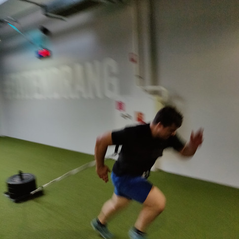 Beim ersten Training im Performance Center machten wir allerhand verschiedene Übungen: Gewichtheben, Schlittenziehen und -schieben, Schulterdrücken, etc. Die Trainer standen dabei immer daneben und protokollierten jede Auffälligkeit in Sachen Beweglichkeit, Stabilität, Technik, Laufverhalten, etc. Beim Gewichtheben habe ich immer noch meine größten Probleme. Christoph und Max gehen da aber selbst beim Gruppentraining super auf jeden Einzelnen ein und ich konnte schon nach der ersten Einheit merken, wie die Bewegung besser ging.